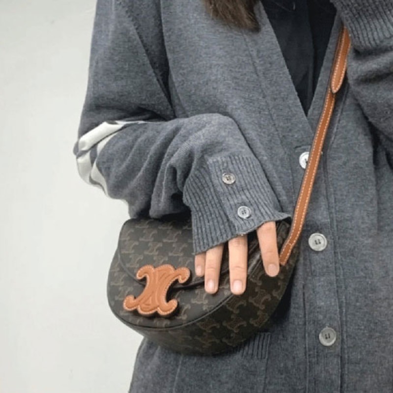 近期討論度極高的 【2色】CELINE Triomphe凱旋門 經典馬鞍包 半月包,延續了品牌經典的馬鞍結構,並以柔和半月造型重新演繹復古輪廓。簡約的金屬凱旋門 Logo 扣飾,成為整體造型的焦點。無論選擇經典棕老花或黑色皮革款,都能輕鬆搭配各種服飾,是時髦女性的夢幻單品。