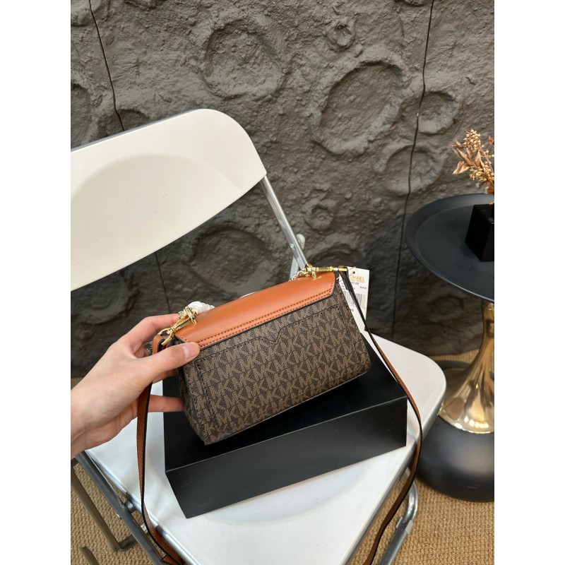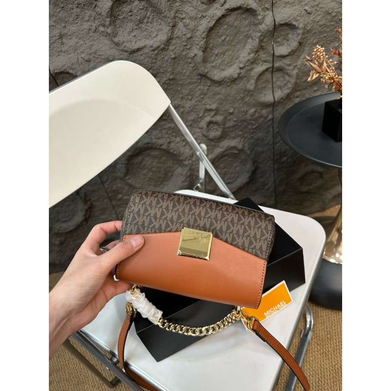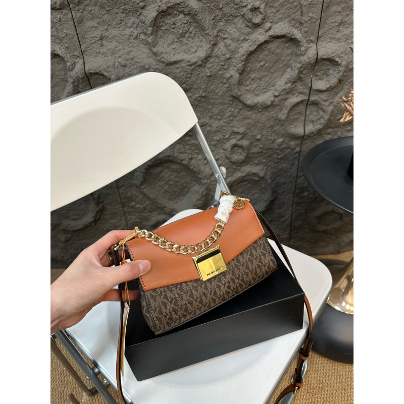 本季焦點推薦:【棕色老花】Michael Kors MK 新品實用型 Lita 系列鏈條包。標誌性老花配以光澤鏈條肩帶,尺寸精巧卻擁有分層內袋與卡槽;日夜皆宜的棕色調,搭牛仔、白襯衫或小黑洋裝都能提升造型精緻度。