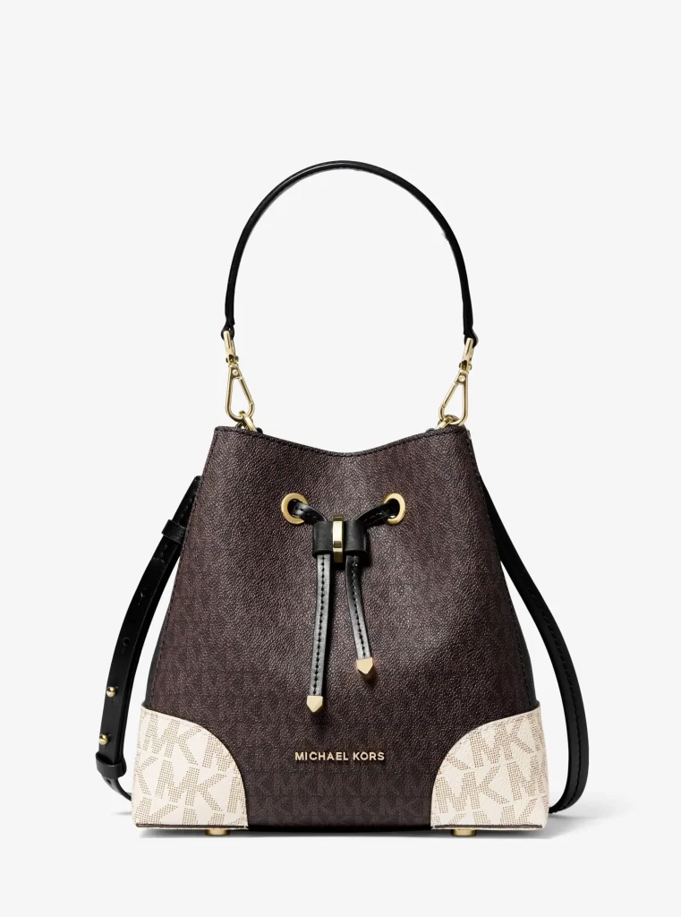 近年人氣高漲的 mk 水桶包,以束口設計與立體袋型著稱,兼顧容量與造型層次。日常通勤可容納長夾、行動電源與隨身美妝;選擇可調式背帶與底部護釘,能提升耐用度與背負穩定性。