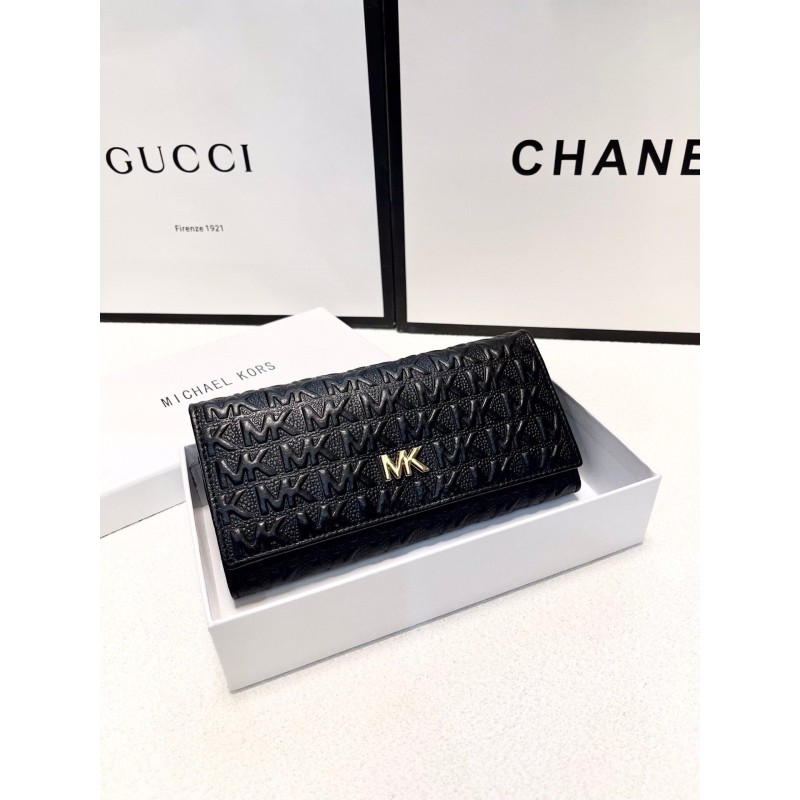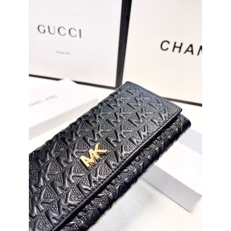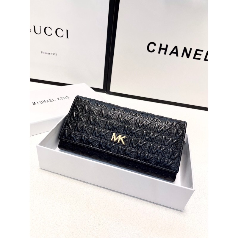 想找正式感與收納滿配的長夾,推薦【黑色】Michael Kors MK 手感壹流 長款錢包。黑色細緻壓紋搭配耐刮皮革,握持觸感紮實;內裡多卡位、拉鍊零錢層與長鈔夾層一應俱全,帳單、車票與手機票根都有位置。若需當手拿包出席會議與用餐,這款以簡約金屬Logo點綴,低調卻不失辨識度。