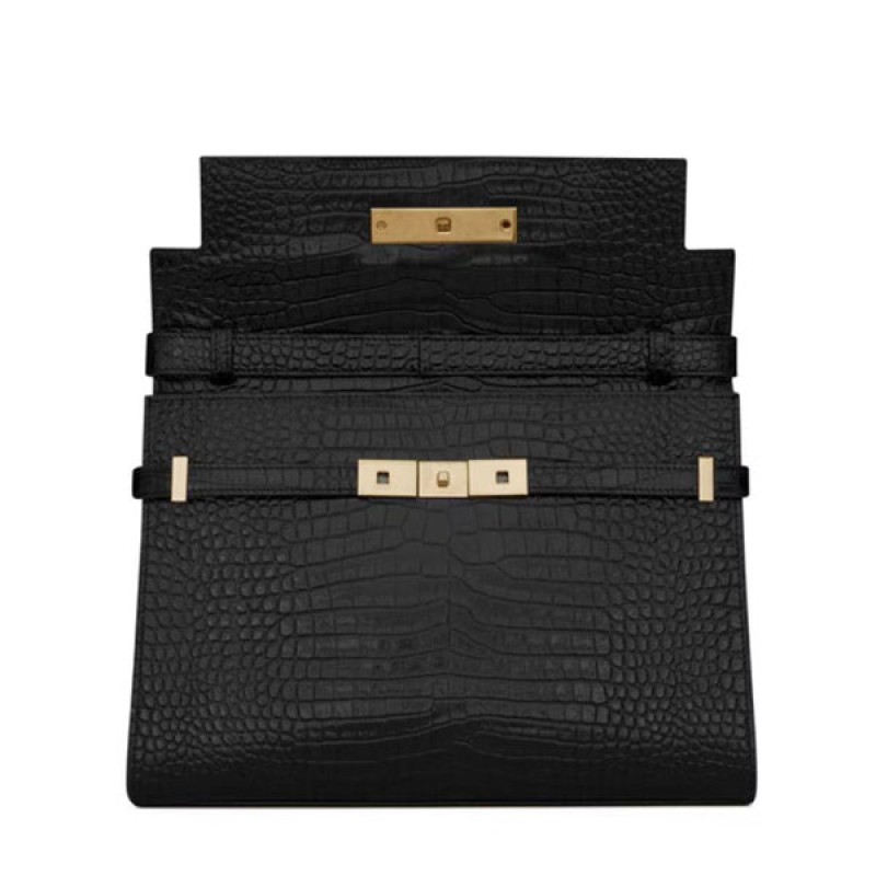 特別推薦這款【原版皮】YSL Saint Laurent Manhattan 鱷魚紋壓印皮革單肩包 斜挎包 黑色,採用高級鱷魚紋壓印皮革,質感細膩而具光澤。無論搭配西裝外套或連身洋裝,都能散發低調奢華的魅力。